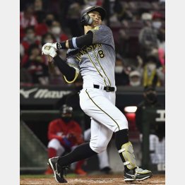 30日の広島戦の最終回、阪神ドラ1の佐藤輝明(22=近大)は、栗林の外角に落ちる球を空振り。この日、3つ目となる三振を喫した。