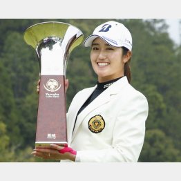 首位に3打差の6位発進の稲見萌寧(21)。雨の中66で回り、上位陣を逆転。2020―21年シーズンで3勝目、通算4勝目を挙げた。