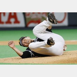 今季初登板の6日、六回に日本ハム・渡辺のピッチャーライナーを体勢を崩しながら捕球。完全に転倒していれば惨事は免れたのだろうが、スパイクの歯が硬いマウンドに食い込んだのか、左足首に全体重が乗ったまま崩れ落ちてしまった。