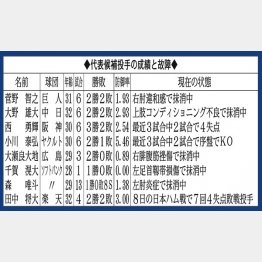 「このままでは、東京五輪に臨む侍ジャパンも、苦戦を強いられかねない。故障や不調で苦しんでいるのは代表の主戦クラス。選出すらできない事態も想定する必要がある。しかも、稲葉監督が期待する楽天の田中将は、ここまでの投球を見ても全盛期の勢いがない。優先的に選出される可能性がある19年プレミア12メンバーにしても、今季安定しているのはオリックスの山本、ソフトバンクの嘉弥真くらい。楽天の岸、ソフトバンクの高橋礼、DeNAの山崎らがさらに状態を上げてくれればいいのですが……」
