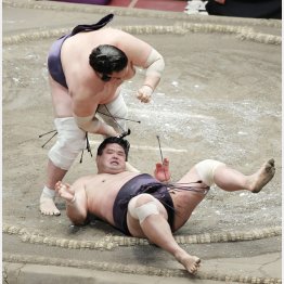 相手はこれまで12勝3敗と合口のいい妙義龍。まわしこそ取らせてもらえなかったものの、腕をきめて左手で小手投げ。つんのめりながら踏ん張る妙義龍の頭部を押さえ込み、土俵に転がした。