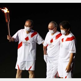 聖火が入場。金メダリストである柔道の野村忠宏、レスリングの吉田沙保里から巨人の長嶋茂雄終身名誉監督(85)へ渡った。愛弟子の松井秀喜(47)がシャツの後ろをグッと掴んで支える。横には盟友の王貞治ソフトバンク球団会長(81)。日本球界が誇る国民栄誉賞3人の登場だが、サプライズ感はない。