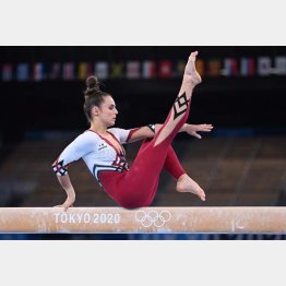 25日行われた体操女子予選で目を引いたのが、ドイツ代表たちのユニホーム。 従来のレオタードではなく、全身を覆うボディースーツのユニホームで演技を行ったのだ。写真は平均台の演技を行うポーリーヌ・シェーファー選手(24)。変更の背景にあったのが、女性アスリートの盗撮被害や性的な目的での画像拡散。 ドイツ体操協会はSNSで「体操の性的な問題について女子アスリートが不安になることなく美しさを示すため」などと理由を説明している。
