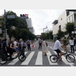 7月22日の開会式に比べると人出は少ないものの、警備体制だけは強化されていた。開会式の時は近付けた五輪モニュメント付近は立ち入り禁止ムードが漂い、近隣道路は物々しい空気に包まれていた。