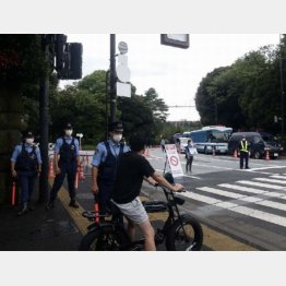 仕方ないので南下して青山一丁目交差点に出ると、青山通りが完全通行止めになっている。路肩には警備車両がこれでもか! というほどズラッと並び、目につくのは警官ばかり。「そこまで警戒しなければいけないのか……」と疑問が湧いてくる。