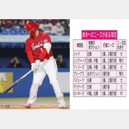 1、2番打者タイプを求めている7球団以外にも、鈴木を「2割8分、25本塁打以上と期待し、3~6番打者として評価している球団もある」(代理人関係者)というから、さらに手を挙げる球団は増えるだろう。