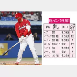 メジャーに詳しいスポーツライターの友成那智氏は、「打率2割7分、15本塁打、35二塁打を狙える中距離打者で、中レベル以上の出塁率.340程度を期待でき、守備でも高い貢献ができる『1、2番打者』候補として考えられている」とした上で、鈴木へのニーズがありそうな7球団をリストアップ(別表参照)した。