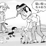同組プレーヤーがパットした後にホールを塞ぐ枯れ葉を拾い上げたケース