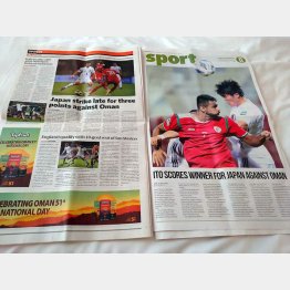 その後、前夜のオマーン-日本戦の新聞記事をチェックしようとガソリンスタンドのショップで「オマーン・オブザーバー」と「マスカット・デイリー」の現地紙2紙を購入。スポーツ面を開いたところ、前者は一面に渡って冨安の写真が大々的に掲載されていた。記事のタイトルは「伊東のゴールで日本が勝利」とあるのだが、なぜか伊東の写真は使われていない。やはり英・プレミアリーグの名門クラブ所属選手の方が知名度が高いという判断なのだろう。
