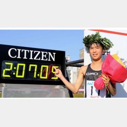3月の東京マラソンで大迫が出した日本記録(2時間5分29秒)を更新させようと、第1集団のPMには1キロ2分58秒(ゴール設定=2時間5分10秒)のペースを指示。ところがPMが30キロで外れると一挙にペースダウン。