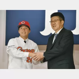 同2位の最速150キロ左腕・森翔平(23=三菱重工West)は「(先発、中継ぎなど)希望はないので、与えられたところでしっかりとチームに貢献できれば」と抱負を語った。佐々岡監督は「今年のドラフトでは、チームの補強ポイントとして即戦力左腕、将来性のある選手をしっかり獲得できた。この中から新人王を取れるような投手が出てくることを期待している」と呼び掛けた。