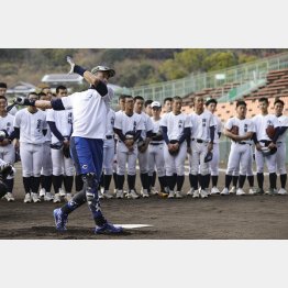 マリナーズの会長付特別補佐兼インストラクターを務めるイチロー氏(48)が12日、高松市のレクザムスタジアムを訪れ、春・夏の甲子園で2度ずつの優勝を誇り、今夏の甲子園で大正から令和の4元号勝利を達成した名門・高松商(香川)ナインに、約4時間の指導を行った。昨年12月に智弁和歌山、今年11月に国学院久我山(東京)、今月2、3日に千葉明徳で指導したのに続き、今回が4校目。今年は3校目の訪問となった。