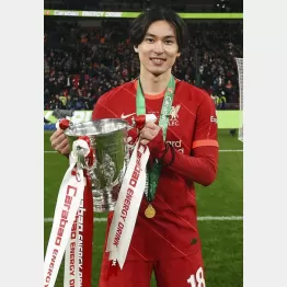 リバプールの日本代表MF南野拓実(27)は出番なしに終わったが、試合後に優勝トロフィーを手にして笑顔を見せた。
