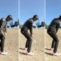 薄い芝からのアプローチは、インパクト後に最下点を迎える構えづくりから