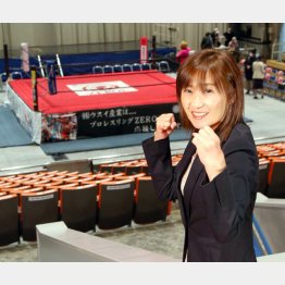 黒のパンツスーツに身を包み、変わらぬ美しさが光る工藤さんに案内されたのは、“格闘技の聖地”後楽園ホール。現在は、「プロレスリングZERO1」(ゼロワン)のゼネラルマネジャー兼、同団体のセカンドブランド「超花火プロレス」で“エクスプロージョン・プリンセス”という肩書で、裏方スタッフとして奮闘している。