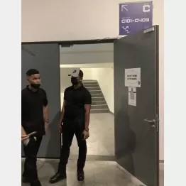 「久しぶりの海外遠征ですよね!」「ワクワクですよね!」。お姉さんは笑顔いっぱいで言葉を送り、お互いの旅の安全と勝利を願いつつ、「コロナ対策はしっかりね~」とみんなで手をゴシゴシと洗いました。