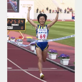 「ハーフの女王」と呼ばれる頃には1万メートルの記録も伸び出し、01年日本選手権3位(31分51秒13)で同年世陸の代表になった。
