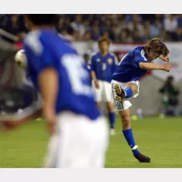 コーナーフラッグ付近で「見たか!」とばかりにガッツポーズの中村。トルシエ監督に対してこれ以上にないアピールだった。だが、それでもW杯の最終メンバーから外れた。
