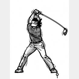 この時に気をつけてほしいのは肩を水平に回さないようにすること。アドレスを飛球線方向から見ると上半身は前傾しているので、肩は背骨に対して直角の角度で弧を描くように回るのが正しい動きです。