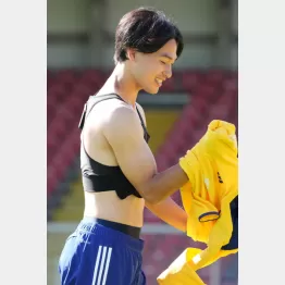練習は冒頭15分のみの公開。ボール回しの一番の盛り上げ役は、今回もフィールド最年長の長友佑都(FC東京)。彼や原口元気(ウニオン・ベルリン)は鎌田大地(フランクフルト)に事あるごとにちょっかいを出していた。