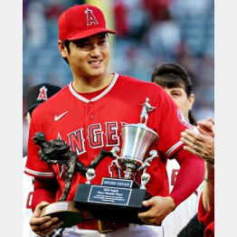 大谷が10月1日(日本時間2日)、アナハイムで行われたレンジャーズ戦の前にチームMVPと最優秀投手賞(ニック・エイデンハート賞)を2年連続ダブル受賞した。