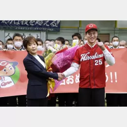 同じ苫小牧中央で投手をする弟の翔太さん(16)と共にドラフト会議の指名を待った明美さんは斉藤から「ここまで育ててくれてありがとう」と花束を贈られ、「本当にうれしいです」と涙ぐんだ。