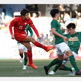 7日の準決勝(神村学園-岡山学芸館戦、東山-大津戦)で注目を集めているのが、選手権が終わると独1部ボルシアMGに入団する神村学園FW福田師王である。