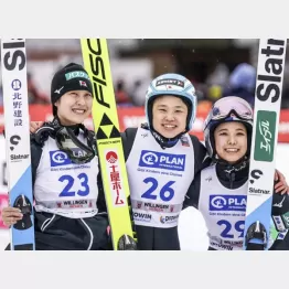 日本の女子ジャンプ陣が快挙だ。現地5日のW杯個人第17戦ドイツ・ビリンゲン(ヒルサイズ=147メートル)で、伊藤有希(28)が6季ぶりの通算6勝目を挙げ、2位に丸山希(24)、3位に高梨沙羅(26)が入り、日本勢がW杯で初めて表彰台を独占した。