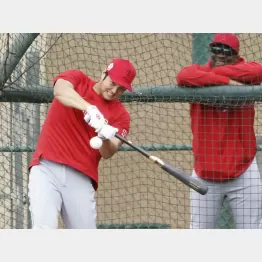 フィル・ネビン監督らが見守る中、キャッチボールや塁間ダッシュの他、フリー打撃では柵越えを披露するなど快音を連発。15日からのバッテリー組のキャンプイン、3月のWBC開幕に向けて順調な仕上がりぶりをアピールした。