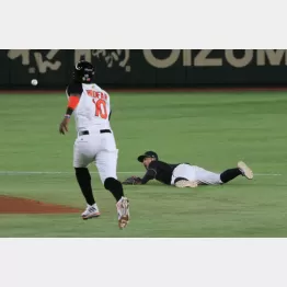 6-5の七回1死一塁、ボガーツ(レッドソックス)の中前へ抜けようかという当たりを横っ跳びで好捕。遊撃・坂本へのグラブトスで一塁走者の二塁封殺に成功したのだ。