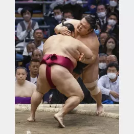 貴景勝は6日目の取組でも御嶽海を押し込めず、足に力が入らない様子だった。相手の押しに上体が上がり、万全の状態には遠かった。
