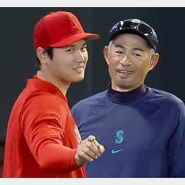 試合前の練習中、大谷は外野にイチロー(マリナーズ会長付特別補佐兼インストラクター)の姿を認めると、歩み寄って帽子を取って挨拶。握手をして1分ほど、談笑した。