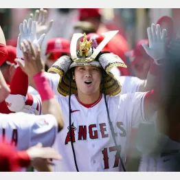 エ軍がこうした小道具を使う「ダッグアウトセレブレーション」をやるようになったのは2021年から。一昨年はカウボーイハット、昨年は地味な麦わら帽だったが、今年は大谷が購入した33万円もする派手なかぶとになったので注目度が格段に高まった。