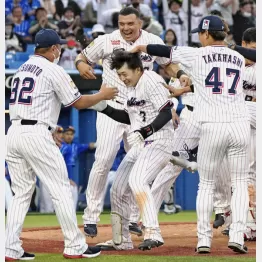 両軍合わせて11本もの本塁打が乱れ飛んだ5日のDeNA戦。8-9と1点ビハインドの九回2死から8番・長岡のサヨナラ2ランで劇的勝利を飾ったヤクルトは、三回には4番・村上の2試合連続となる4号2ランも飛び出した。