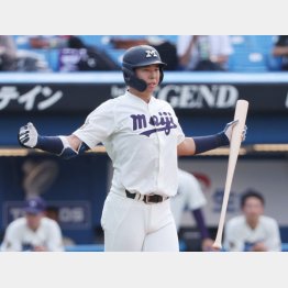 明大の主将兼4番についてこう言うのは、ヤクルトの橿渕聡スカウトグループデスク。内外野を守れる左の長距離砲。近大時代の佐藤輝明(阪神)を彷彿とさせる素材だ。