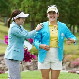 岩井千怜は今季2勝目。実質ツアー2年目で早くも通算4勝目をあげたが、双子の姉・明愛(今大会15位)も今季初優勝を挙げ、「岩井ツインズ」として人気を博している。