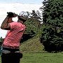 美奈子は、それを素早く拾い上げると、グリーン上を這いながらカップに近づき、中に落とした。