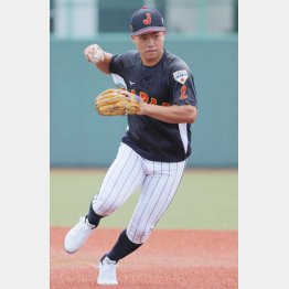 U18日本代表が早大相手に行った練習試合で、攻守にわたって勝利に貢献したのが2番・遊撃でスタメン出場した横浜・緒方漣だ。守備では中堅に抜けそうな難しい打球を軽快にさばくと、タイブレークの練習ではきっちりと犠飛を打ち上げた。