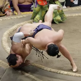 得意の右四つの体勢になり、盤石かと思われたものの、攻め込む勢いを逆に利用され、下手投げで土俵下に転落した。