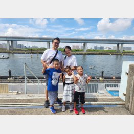 小学校3年生の長男、幼稚園年長組の次男・長女(双子)の3人の子どもたちと一緒に家族そろって楽しんでいたのは佐瀬さん一家。自宅はボートレース場の目と鼻の先、ベランダからレースが見えるほどの近さだそうだ。