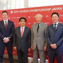男子ゴルフの欧州ツアー(DPワールドツアー)「ISPS HANDA 欧州・日本どっちが勝つかトーナメント!」(4月25~28日、静岡・太平洋クラブ御殿場コース)に特別協賛する国際スポーツ振興協会(ISPS)は24日、開催コースで会見を行った。賞金総額は200万ドル(約2億9400万円)。大会には、欧州から100人、日本から48人、推薦8人の合計156人が出場。メジャー優勝4回のE・エルス、ISPSのアンバサダーでライダーカップの欧州代表R・カブレラベリョ、DPワールドツアー優勝3回のC・ベザイデンハウトも参戦する。