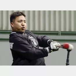 27日にファーム施設で自主トレを公開したソフトバンクの山川穂高(32)。50人ほどの報道陣が訪れる中、山川への取材はテレビのインタビューのみという厳戒態勢だったという。