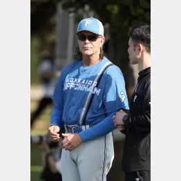選手の練習の様子を見守るのは、元日本ハム監督のトレイ・ヒルマン氏(61)。