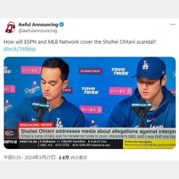 米国の「スポーツギャンブル狂時代」への突入を如実に表していたのが、3月25日に行われた大谷翔平による声明発表だった。この模様はESPN(米国最大のスポーツ専門局)の第2チャンネルで生中継され、11分間の会見の間、テレビ画面には大谷の硬い表情がアップで映し出される中、帯テロップでは、この日行われるさまざまなスポーツイベントのオッズが流れ続けていた。