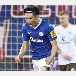 2018年に大阪・履正社高からJ1横浜に入団して以降、J3北九州、J1湘南と浮き沈みを経験しながら、22年のE-1選手権、カタールW杯で日本代表入り。23年6月に代表5試合3得点の実績を引っ提げてキールに完全移籍すると、身長185センチ、体重77キロの恵まれたフィジカルを生かし、今季5得点4アシストと活躍。1900年の創設から125年目を迎えた老舗クラブの偉業達成を支えた。