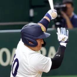 「スイングスピードが速く逆方向にも大きな打球を飛ばせる。中距離打者でDeNAの牧タイプ。遠投110メートルの強肩を生かした中堅の守備力もまずまずで、内野なら三塁と一塁が守れます」