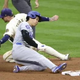 大谷は今春のキャンプ中から走力向上に努め、開幕後は順調に盗塁を積み重ねてきたが、今後も走れる保証はない。過去の盗塁王は、判で押したように後半戦の盗塁数が激減しているからだ。例えば昨季、史上初の「40本塁打、70盗塁」(41本塁打、73盗塁)をマークしたブレーブス・アクーニャJr.も、前半戦の41個から32個と大幅に減らした。