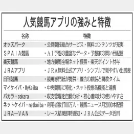 利用には月額プランへの加入が必要。Androidが月額550円、iPhoneは同600円。JRA関連会社が提供するサービスだけに、JRAの公式データが充実しているのが強み。1986年1月から2020年6月までのレースを学習させたAI予想もある。アプリ内でJRA投票ができ、払戻金額がプラスになるよう資金を自動配分してくれる機能も付いている。