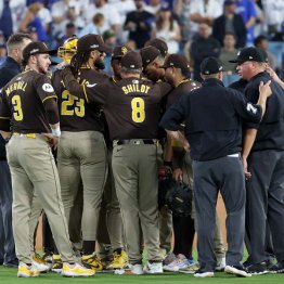 大谷は第1戦でポストシーズン1号となる同点3ランを放った際、雄たけびを上げながらバットを放り投げた。喜びを爆発させた大谷に対し、好意的に報じる米メディアは少なくなかったが、米国でバットを放り投げる行為は相手ベンチから侮辱と取られることもある。今季の大谷は打った瞬間、本塁打とわかる当たりには“確信歩き”で打球の行方を見つめるシーンが多く、同様に挑発行為と受け取られかねない。ましてペトコパークで同じことをやろうものなら、それこそ相手の敵愾心を煽るようなものだ。短期決戦のプレーオフでは敵地の狂気が増幅するのは確実。第3戦以降は要注意だ。
