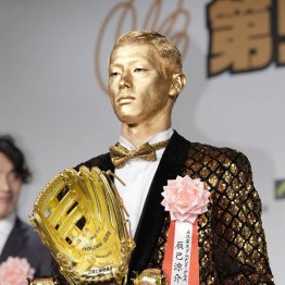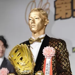 日本代表として出場したプレミア12の決勝戦では、試合前の円陣で「未来から来ました。優勝おめでとう!」と“予祝”。NPBアワードでチョンマゲや甲冑姿のコスプレを披露すると、ゴールデングラブ賞授賞式では髪から顔、衣装まで全身金ピカ姿で登場した。